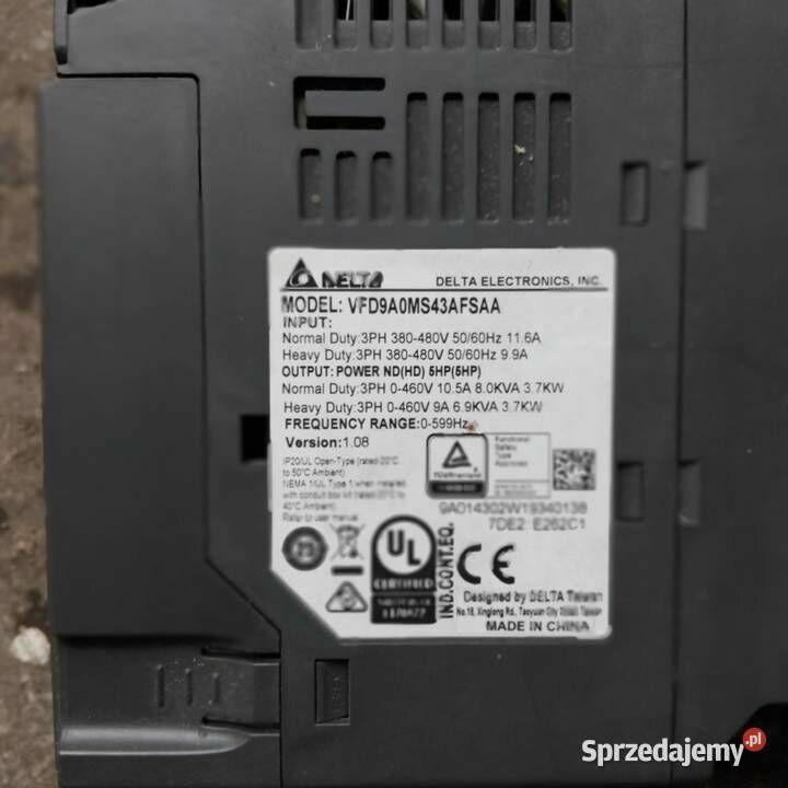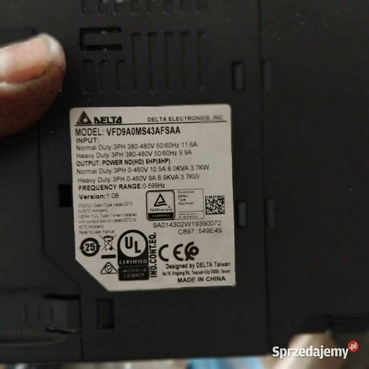 Witam,do sprzedania falownik firmy DELTA VFD9A0MS43AFSAA widoczny na zdjęciach